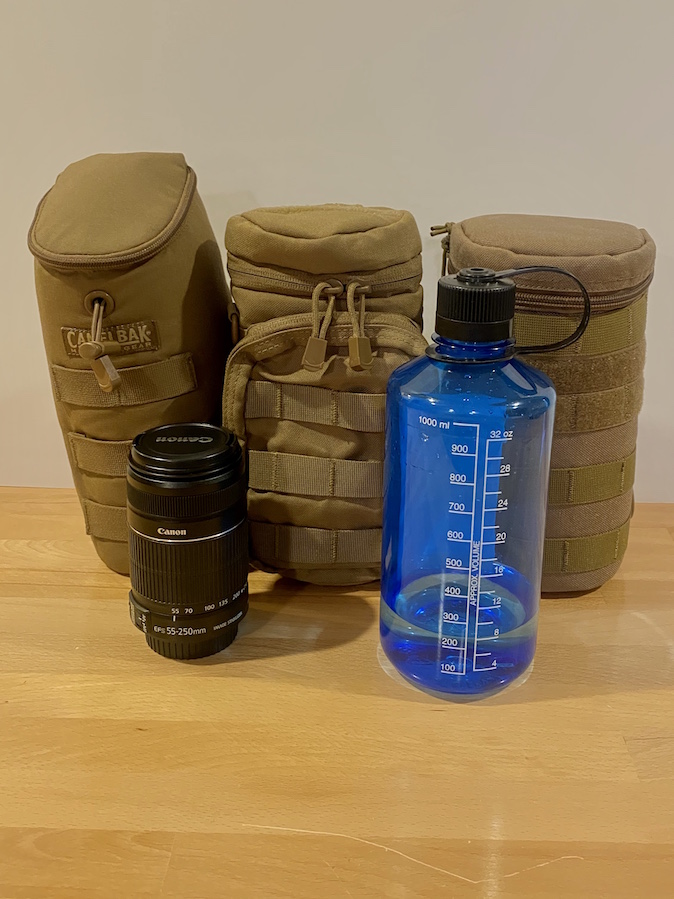 The first decision for me was how to carry camera lenses so I could switch them easily without setting down my pack. I first started looking at insulated water bottle pouches, which worked ok, and then I found the Hazard 4 Jelly Roll designed for exactly this.