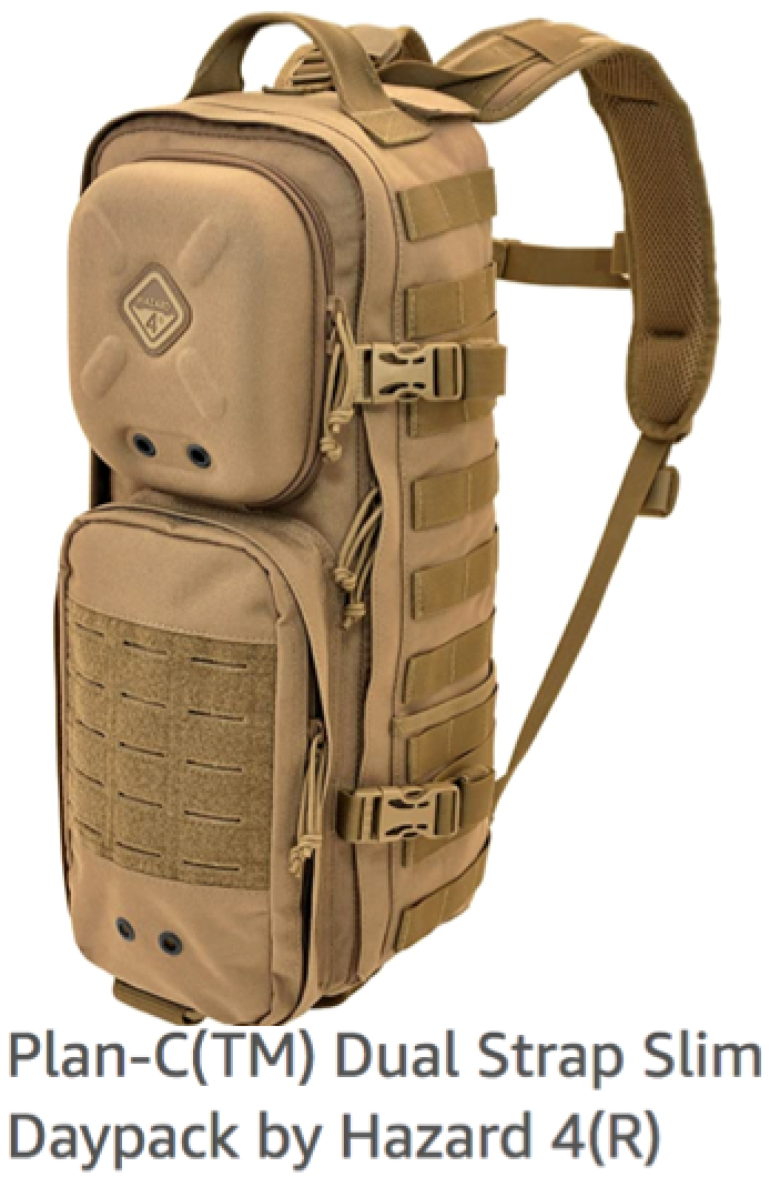 Plan C Slim Daypack, designed to accept the padded electronics inserts. It can also be used without the inserts, as a normal daypack. (It also comes in black and gray if you're not a fan of coyote.)