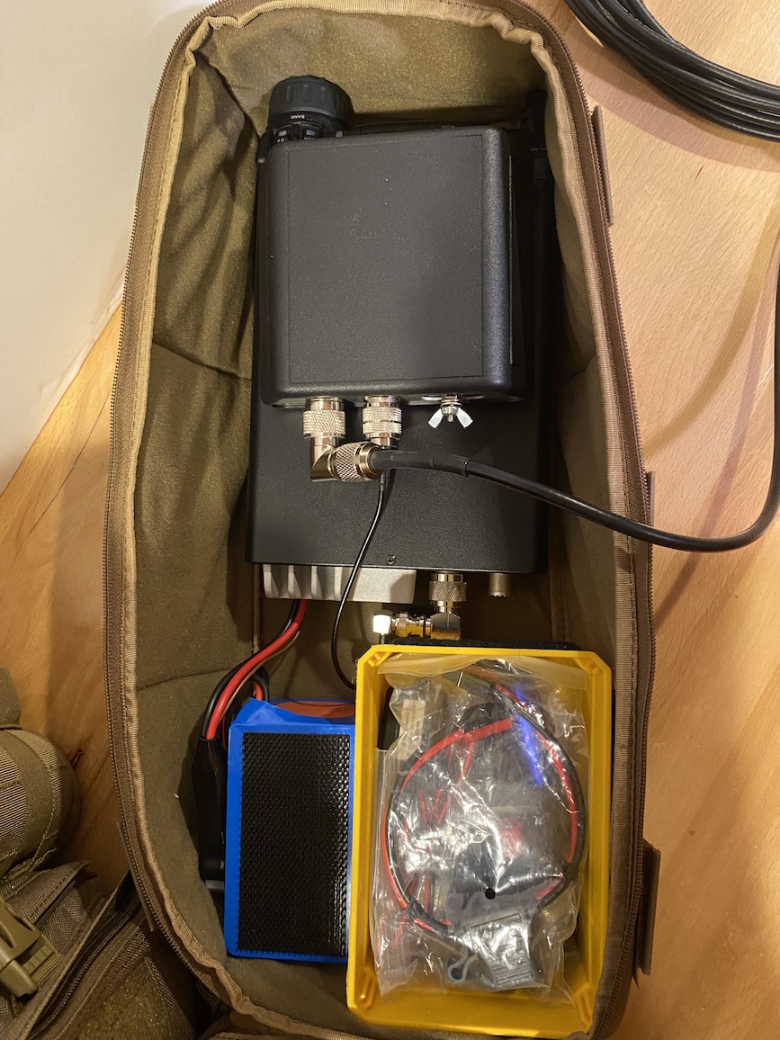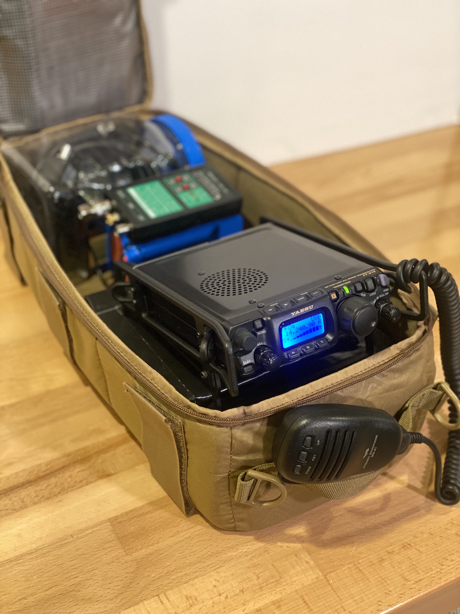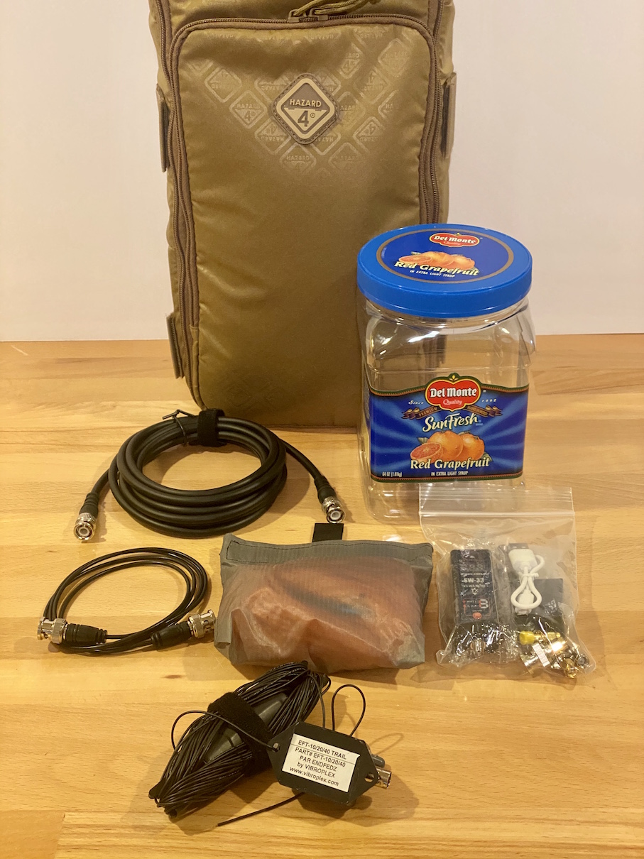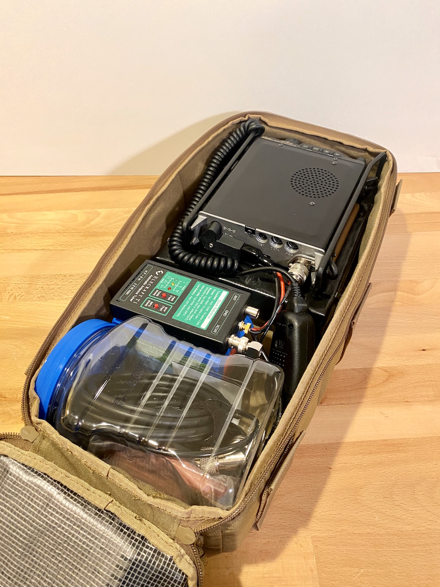 Complete package, including radio, antenna tuner, LiFePO4 battery and charger, admin (manuals, paper, pens), etc., in one easy grab-and-go kit. Antenna may or may not be part of the kit depending on the goal, but for this build I used the Par EndFedz EFT-10/20/40 Trail Friendly.