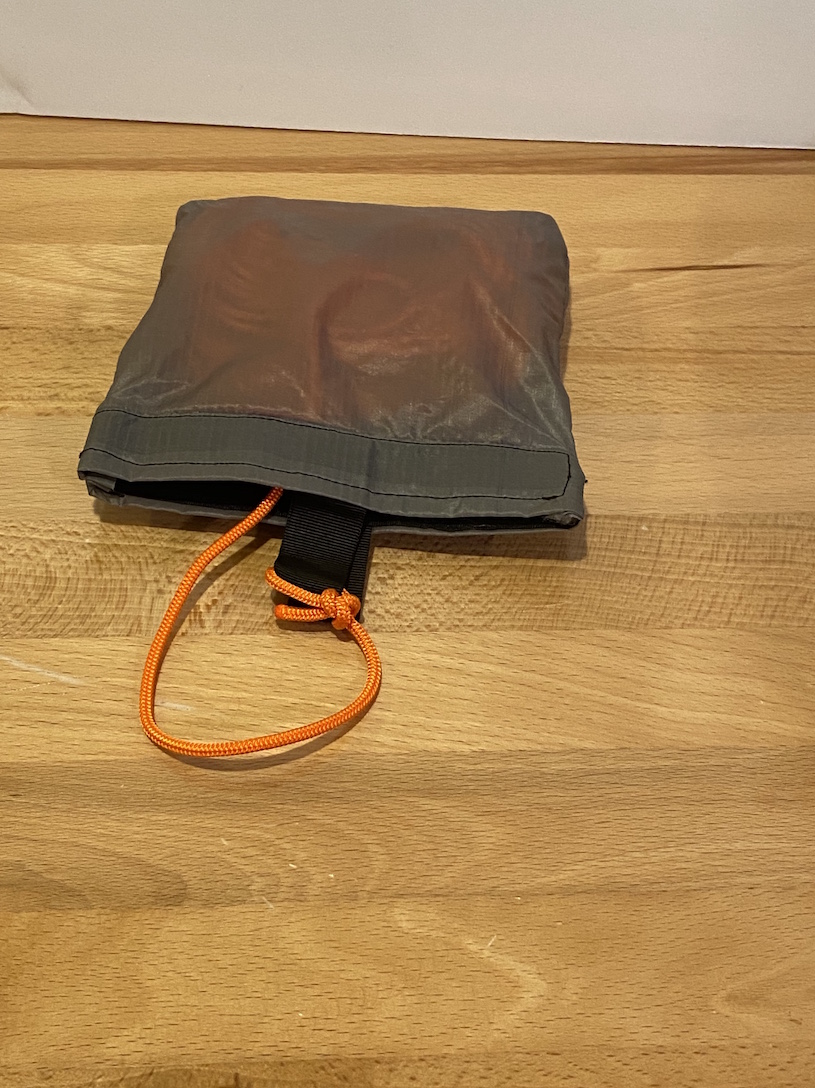 Homemade Throw Bag. I originally made this silnylon throw bag to hang my food sack when I go backpacking. It has a velcro closure to hold the line inside, and I tie one end of the line to an opening tab. At camp, or in this case where I want to throw the line over a branch to pull up the wire antenna, I can put found items like small rocks into the bag for weight. This eliminates the need to find creative ways to tie up a rock, and I don't need to use branches that might get hung up in the trees, etc.