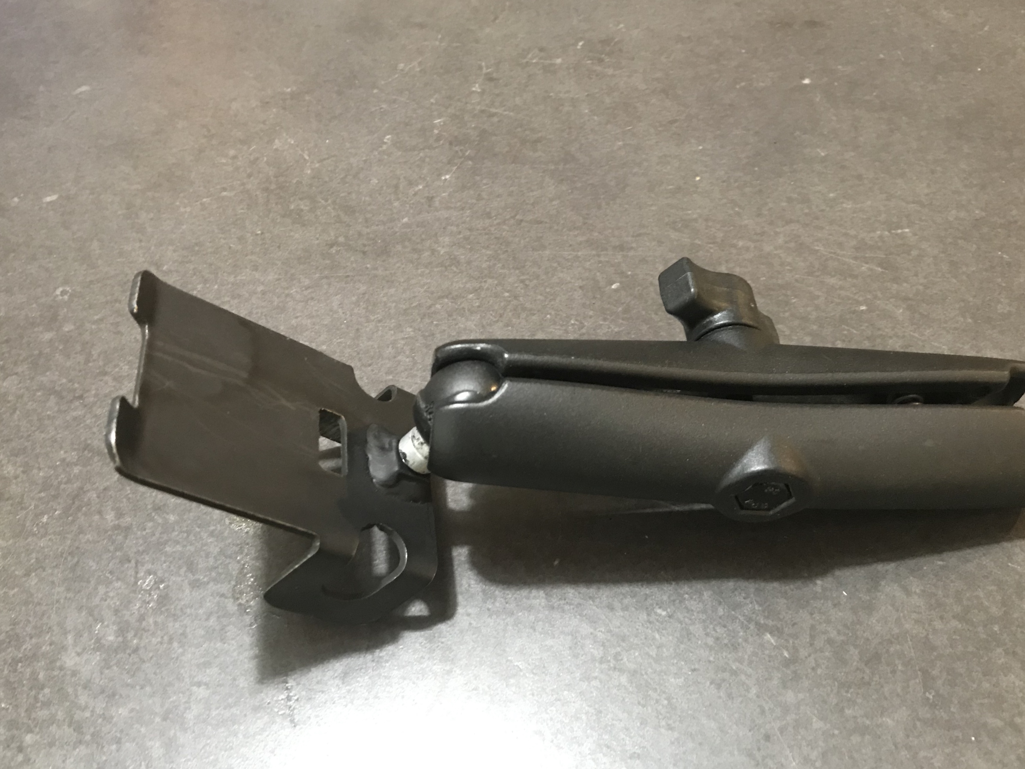 To secure it, I screwed a 1" RAM Ball Adapter with 1/4"-20 Threaded Post onto the back of the Metal Holster, connected that to a RAM Double Socket Arm (Long, for 1" Ball Bases), and then connected this Long Arm to a RAM Mount Plate (2" x 1.7" with 1" Ball).