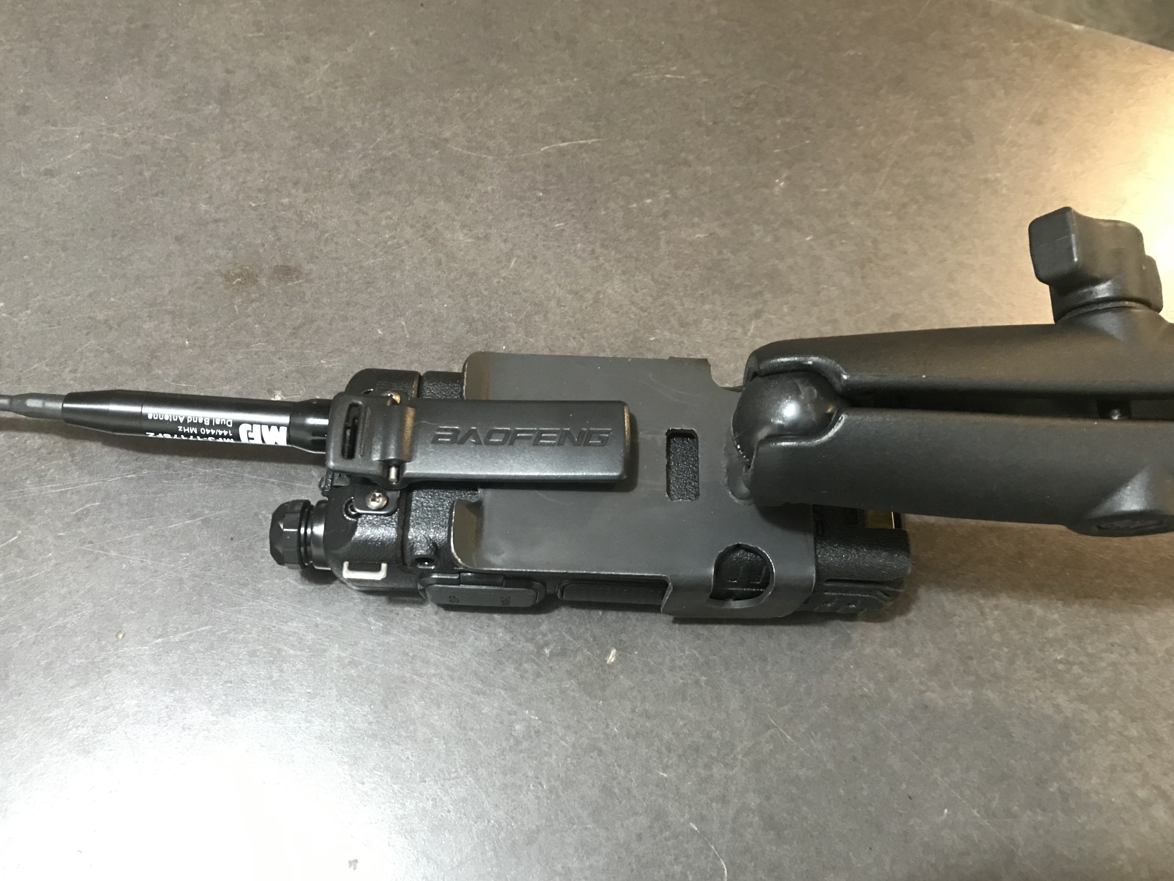 I wanted a way to mount the inexpensive Baofeng radios in my Jeep Wrangler, but I had some design criteria that steered me away from some of the simpler methods, like the Rugged Radios Single Side Radio Mount or the Slip Grip RAM Holder.